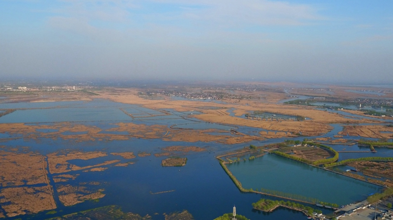 俯瞰河北省安新县境内的白洋淀(3月31日摄)。