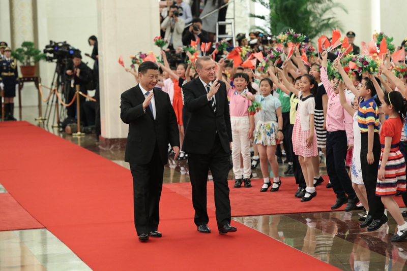 会谈前,习近平在人民大会堂北大厅为埃尔多安举行欢迎仪式。