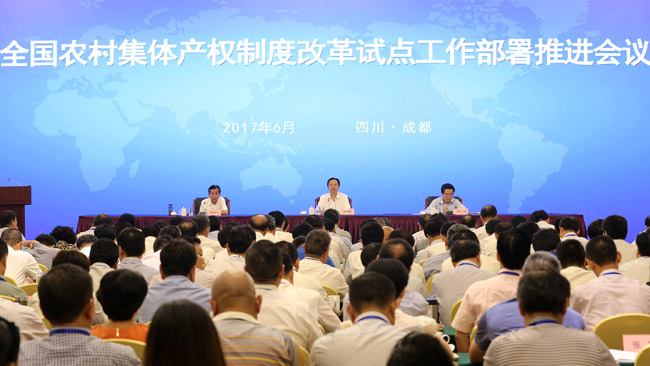 6月9日,农业部在四川省成都市召开全国农村集体产权制度改革试点工作部署推进会,深入贯彻习近平总书记重要讲话精神,落实中央《关于稳步推进农村集体产权制度改革的意见》要求,部署扩大农村集体产权制度改革试点工作。农业部部长韩长赋在会上强调,各试点单位要认真谋划深入抓好各项改革试点,坚持解放思想、实事求是,鼓励探索、大胆实践,敢想敢干、敢闯敢试,多出可复制可推广的经验做法,带动面上改革,用稳步推进农村集体产权制度改革的优异成果,迎接党的十九大胜利召开。