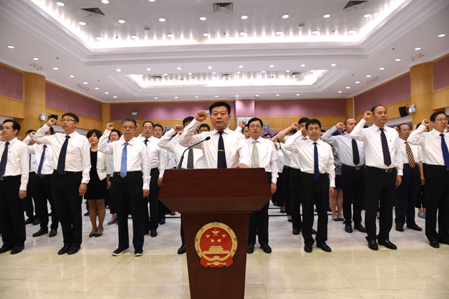 6月15日,国家税务总局举行2017年以来任命的司处级干部宪法宣誓仪式。税务总局党组书记、局长王军监誓,党组成员、总经济师任荣发主持宣誓仪式。