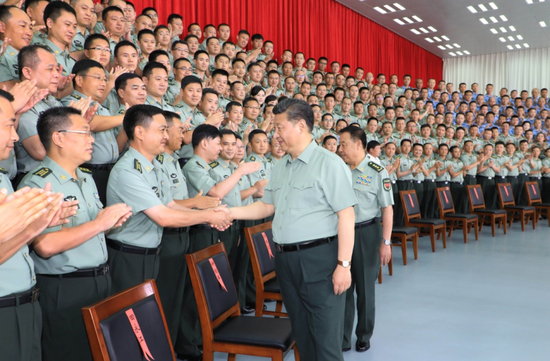 6月30日上午,正在香港出席庆祝香港回归祖国20周年活动的中共中央总书记、国家主席、中央军委主席习近平视察中国人民解放军驻香港部队,代表党中央和中央军委向驻香港部队全体指战员致以诚挚的问候。这是习近平接见驻香港部队机关和直属单位团以上干部。新华社记者 李刚 摄