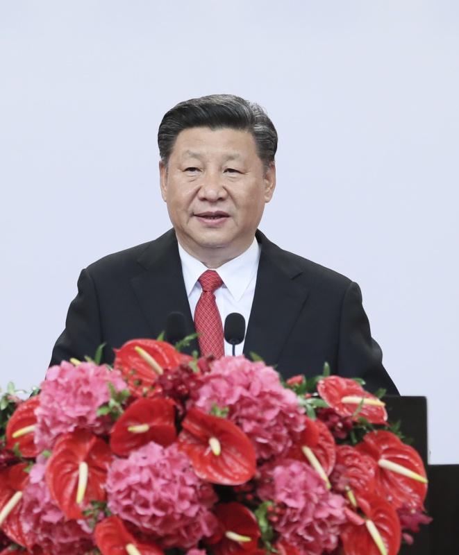 6月30日晚,国家主席习近平出席香港特别行政区政府欢迎晚宴并发表重要讲话。新华社记者 兰红光 摄