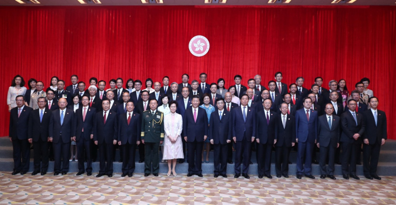 7月1日上午,国家主席习近平在香港特别行政区行政长官林郑月娥陪同下,会见香港特别行政区新任行政、立法、司法机构负责人。新华社记者 鞠鹏 摄
