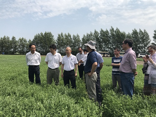 今年是我国北方草原持续大旱的第三年,在炎热的夏季草地还未完全返青,大部分呈枯黄之态。为在大旱之时推进中科院生态草牧业科技示范的顺利进行,落实江南平台入口 和汪洋副总理的要求,6月26日至27日,中国科学院副院长、党组成员张亚平一行赴内蒙古呼伦贝尔市草牧业核心示范区——呼伦贝尔农垦集团特泥河农牧场和谢尔塔拉农牧场进行调研,查看旱情及中科院示范区的草地恢复状况。