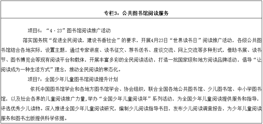 1.强化法律和政策保障。落实公共文化服务保障法,深入开展公共图书馆立法支撑研究,推动出台公共图书馆法。加快古籍保护立法进程,鼓励和支持各地制定地方性图书馆法律法规。