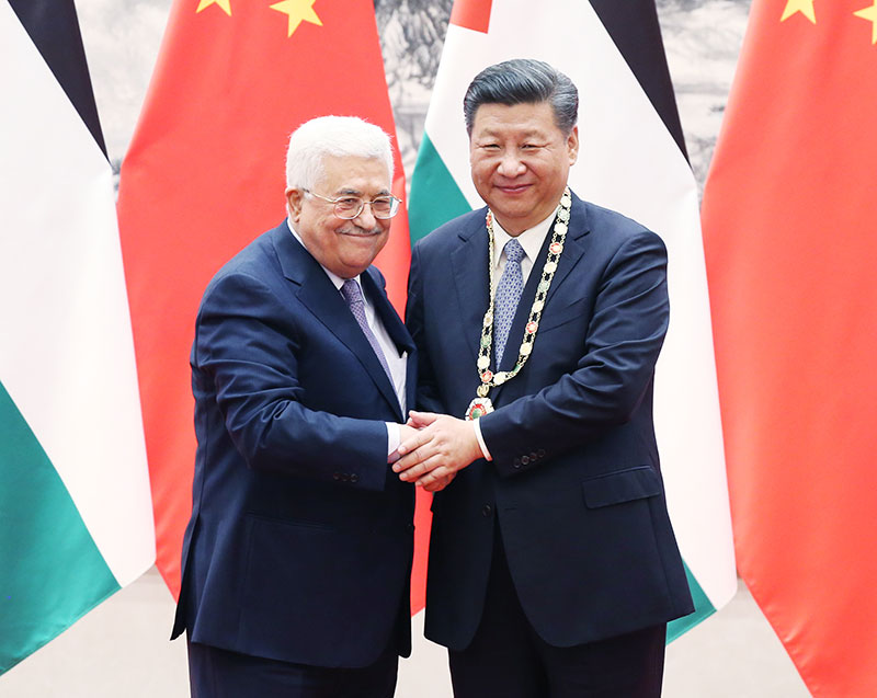 习近平指出,中巴两国友谊源远流长。中国是最早支持巴勒斯坦人民正义事业、最早承认巴勒斯坦解放组织和巴勒斯坦国的国家之一。两国人民相互理解、相互信赖、相互支持,是真正的好朋友、好伙伴、好兄弟。近年来,中巴两国高层交往密切,政治互信更加巩固,各领域合作得到稳步发展。