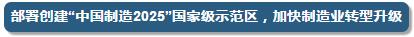 会议强调,在东中西部选择部分城市或城市群建设国家级示范区,要聚焦创新体制机制、深化开放合作、破解制造业发展瓶颈,与“互联网+”、“双创”结合,打造先进制造工业云平台,在创新体系建设、智能和绿色制造等方面先行先试。同时,将目前已在国家自主创新示范区等实施的简政放权、财税金融、土地供应、人才培养等有关政策扩展到示范区,并对内外资企业一视同仁。主要有: