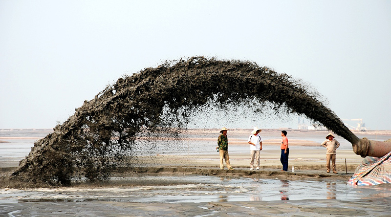 从本世纪初起,广西钦州市在钦州港海域开展大规模吹沙填海活动,投资28.28亿元的一期工程涵盖面积2.5平方公里,建设行政综合大楼、10万吨级码头作业区、保税物流区、出口加工区和综合服务区以及卡口、监控中心、查验场等监管的查验设施。