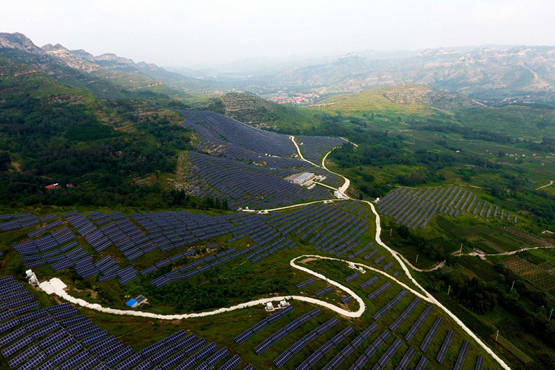 山东省淄博市博山区充分利用岩石裸露、不宜耕种的荒山,在源泉镇西山村建成华能淄博博山光伏电站,发展清洁新能源。据悉,该电站于2016年5月实现并网发电,每年可为淄博市减少二氧化碳排放1.07吨、减少二氧化硫排放77.64吨。