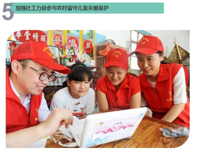 近日,民政部等五部门联合印发了《关于在农村留守儿童关爱保护中发挥社会工作专业人才作用的指导意见》。《意见》明确了社会工作专业人才在农村留守儿童关爱保护中的主要任务:包括协助做好救助保护工作,及时发现报告遭受或者疑似遭受家庭暴力或其他受虐行为,协助做好应急处置工作。协助做好对无人监护或遭受监护侵害农村留守儿童的心理疏导、精神关爱和临时监护照料工作等。