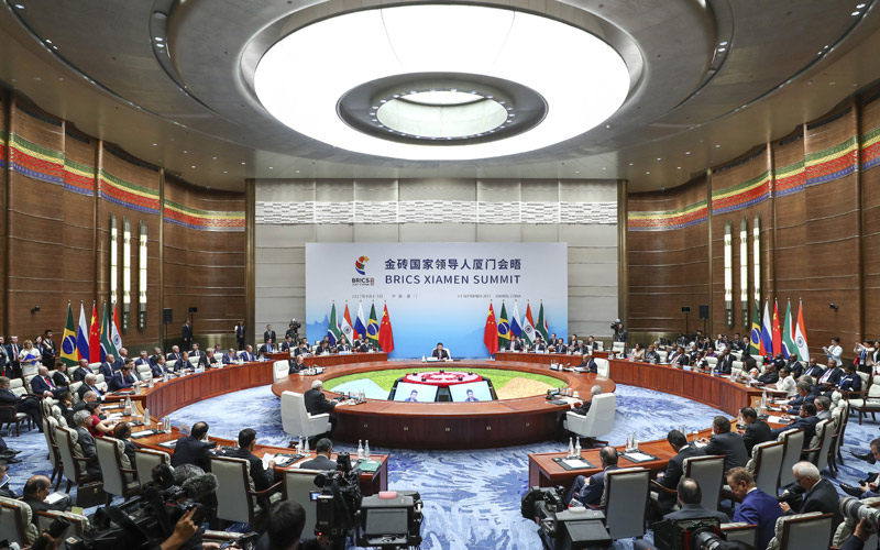 9月4日,金砖国家领导人第九次会晤在厦门国际会议中心举行。国家主席习近平主持会晤并发表题为《深化金砖伙伴关系 开辟更加光明未来》的重要讲话。新华社记者 马占成 摄
