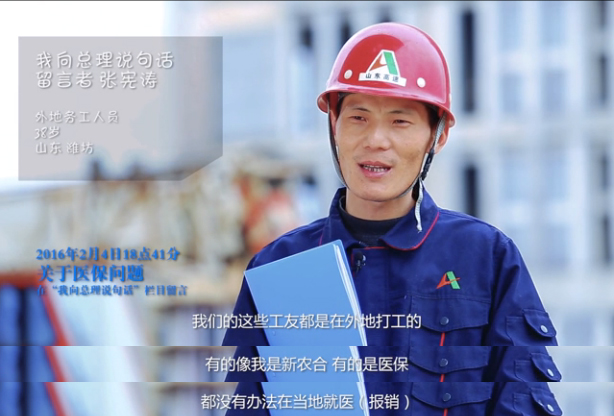 “我向总理说句话”栏目组回访留言关注医保全国联网的网友。