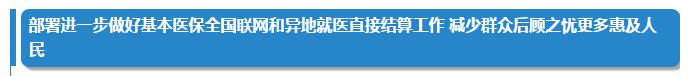 会议指出,顺应群众期盼,在全国推进基本医保信息联网,实现符合规定的异地就医住院费用直接结算,是今年《政府工作报告》明确的医改重点任务和民生承诺。截至9月底,全国所有省份和统筹地区已全部接入国家异地就医结算系统并联网运行,覆盖全部参加基本医保和新农合人员;符合规定的省内和跨省异地住院费用实现直接结算,消除了广大患者多年来心头“痛点”。