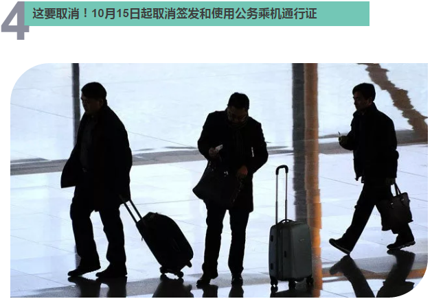 民航局日前发布《关于取消签发和使用公务乘机通行证的通知》,决定从10月15日起取消签发和使用公务乘机通行证。《通知》要求,各证件签发单位要认真梳理本单位已使用证件和剩余证件情况,并对现有剩余证件集中组织销毁。各证件使用单位要立即研究并启用证件取消后可行的替代措施,确保企业运行和正常工作不受影响。
