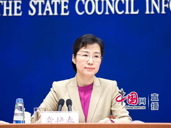 国新办新闻局副局长袭艳春主持发布会。中国网 伦晓璇 摄