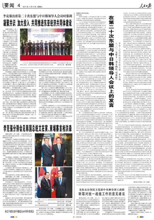 李克强出席第二十次东盟与中日韩领导人会议时强调