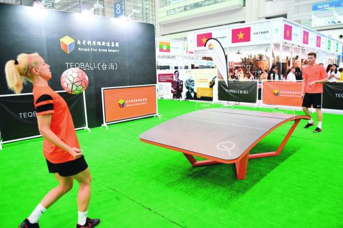 5月12日,在第十三届中国(深圳)文化产业博览交易会上,“一带一路”馆内,来自匈牙利、立陶宛等国的参展商展示的文化多元创意产品别样靓丽。图为匈牙利参展商演示桌式足球。(图片来源:中新社资料图)