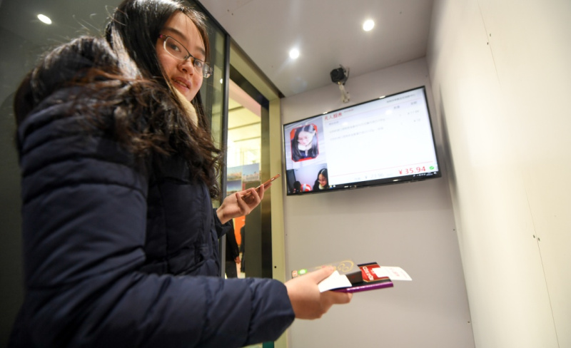 1月18日,顾客通过人脸识别技术结账付款。