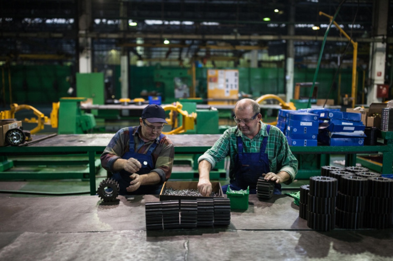 一年前,国家主席习近平在世界经济论坛年会和联合国日内瓦总部发表两场历史性演讲,向世界描绘一幅构建人类命运共同体的壮美蓝图,产生了强烈反响。2017年10月26日,在波兰小镇斯塔洛瓦沃拉的柳工锐斯塔公司,波兰工人在厂房内工作。中国机械设备制造商广西柳工收购当地企业建立的柳工锐斯塔公司为当地创造了大量就业岗位,并获波兰全国最佳雇主奖。新华社记者 陈序 摄