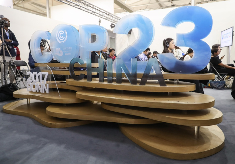 一年前,国家主席习近平在世界经济论坛年会和联合国日内瓦总部发表两场历史性演讲,向世界描绘一幅构建人类命运共同体的壮美蓝图,产生了强烈反响。这是2017年11月15日在德国波恩联合国气候变化大会期间拍摄的中国展馆。中国正成为完善全球治理最为活跃的动力。新华社记者 单宇琦 摄