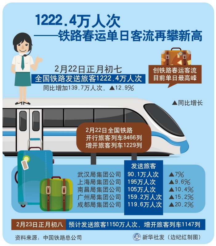 图表:1222.4万人次--铁路春运单日客流再攀新高