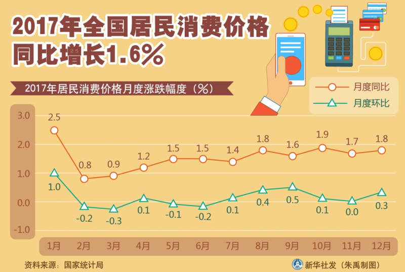 图表:2017年全国居民消费价格同比增长1.6%