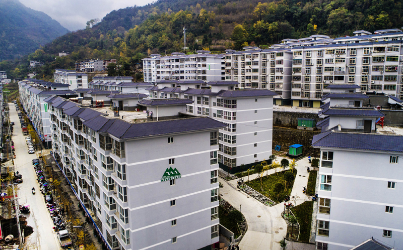 2017年11月15日拍摄的陕西省岚皋县城关镇西坡社区陈家沟保障性住房和避灾扶贫搬迁安置小区。