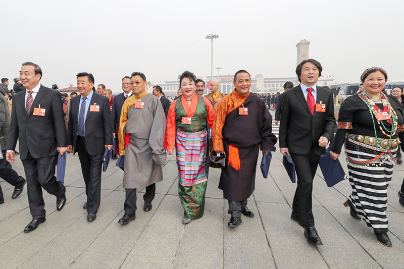 3月3日,中国人民政治协商会议第十三届全国委员会第一次会议在北京人民大会堂开幕。这是委员们走向会场。