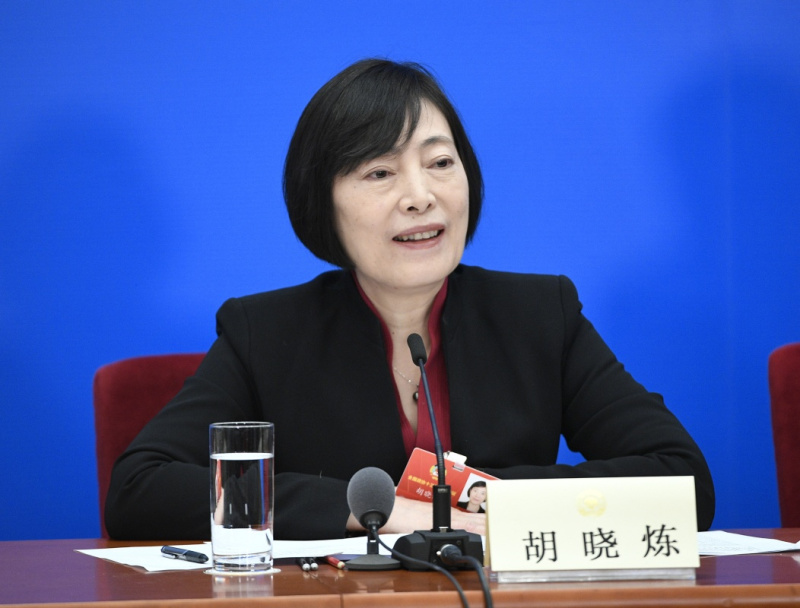 3月8日,全国政协十三届一次会议新闻中心在北京人民大会堂举行记者会,邀请全国政协委员杨伟民、胡晓炼、陈晓华、钱颖一、宁高宁谈推动经济高质量发展。这是胡晓炼回答记者提问。