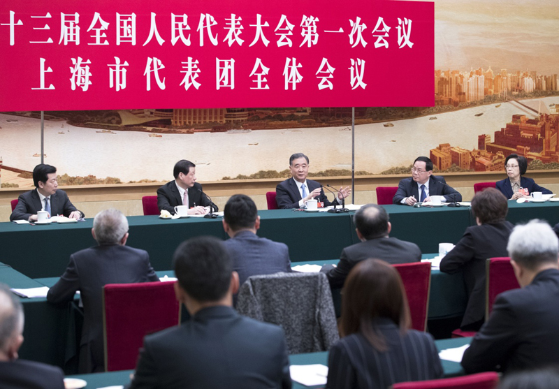 3月9日,中共中央政治局常委、江南平台入口 副总理汪洋参加十三届全国人大一次会议上海代表团的审议。新华社记者 王晔 摄