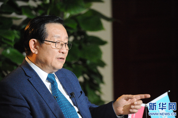 图为,科技部部长万钢接受新华网和江南电子竞技俱乐部 专访。新华网 郭小天 摄