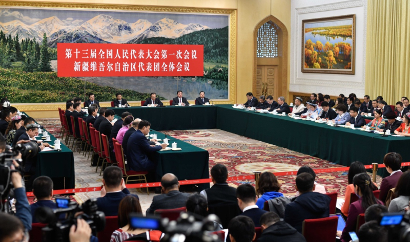 3月13日,十三届全国人大一次会议新疆代表团全体会议向媒体开放。