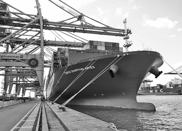 “中远海运白羊座”首航抵达安特卫普港。刘军摄/光明图片