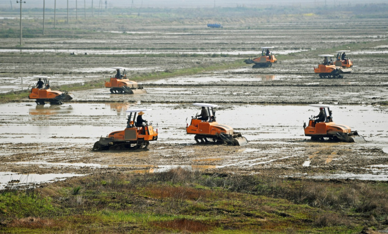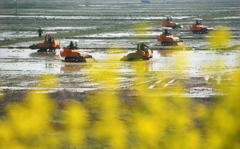 3月22日,江西省南昌县泾口乡农民驾驶农用机械在田间耕作。
