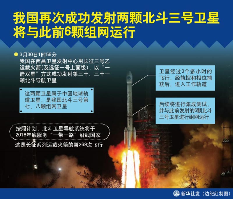 图表:我国再次成功发射两颗北斗三号卫星 将与此前6颗组网运行
