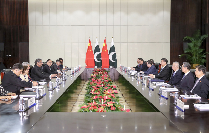 习近平指出,我2015年访问巴基斯坦以来,中巴全天候战略合作伙伴关系取得长足进展。当前,国际和地区形势正在发生深刻复杂变化。巩固中巴全天候友谊,深化中巴战略合作,具有更加重要和现实意义。中巴关系应当成为睦邻友好的典范、地区和平稳定的支柱、“一带一路”国际合作的标杆。中方愿同巴方一道,发挥高层交往对双边关系的重要引领作用,保持各领域密切交流,弘扬传统友好,继续相互支持,深化利益融合,推动中巴关系实现更高水平发展,打造更加紧密的中巴命运共同体。双方要继续稳步推进中巴经济走廊建设,规划和实施好瓜达尔港等基础设施、能源、产业园区等项目。