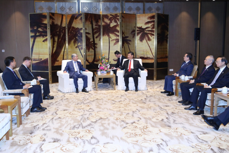 4月11日,国家主席习近平在海南省博鳌国宾馆会见来华出席博鳌亚洲论坛2018年年会的吉尔吉斯斯坦前总统阿坦巴耶夫。新华社记者 姚大伟 摄