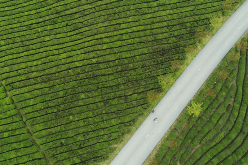 4月11日,茶农在贵州湄潭永兴镇“万亩茶海”中采茶。
