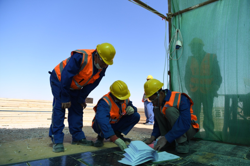 4月10日,在埃及南部阿斯旺省本班光伏产业园,工人在首个由中国企业承建并参与融资的光伏发电项目施工现场工作。