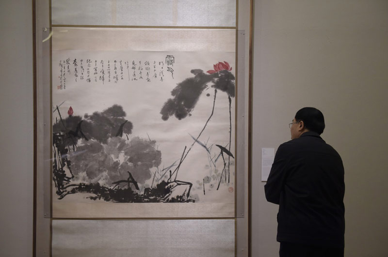 4月13日,参观者在中国美术馆参观来自中国的作品《露气》。