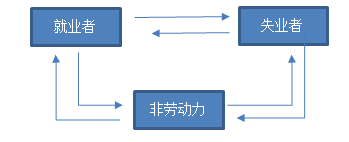 除了反映宏观经济运行情况外,失业率还综合反映了劳动力市场结构、制度等多方面信息。从劳动力市场的存量——流量模型来看,失业人数的变化,不仅与就业人数的变化有关,还与非劳动力的变化有关(详见下图)。