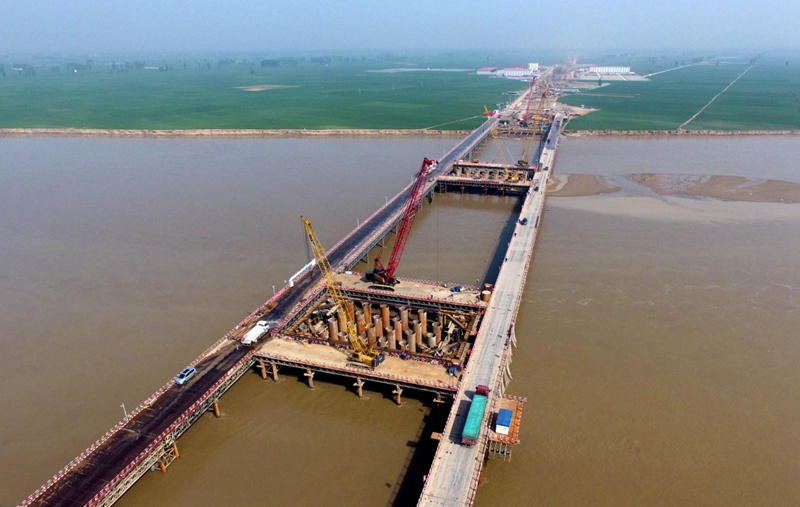 目前,由中铁大桥局承建的郑(州)济(南)高速铁路郑州黄河特大桥建设工程目前进入全面施工阶段。郑济高速铁路郑州黄河特大桥主桥及南引桥全长4377米,采用公路、铁路上下层合建的布置形式,设计4线铁路、6车道快速路,预计2020年4月完工。