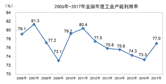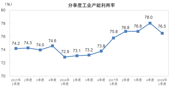 2018年一季度全国工业产能利用率为76.5%