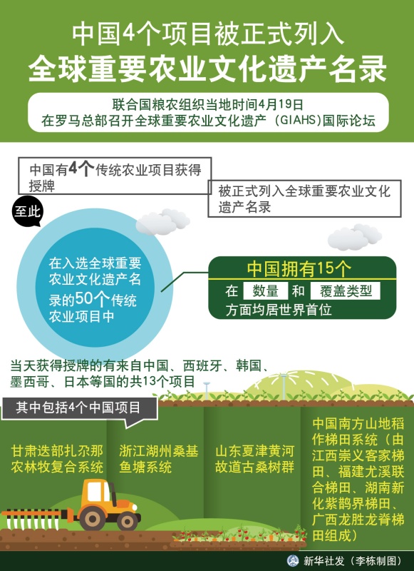 图表:中国4个项目被正式列入全球重要农业文化遗产名录
