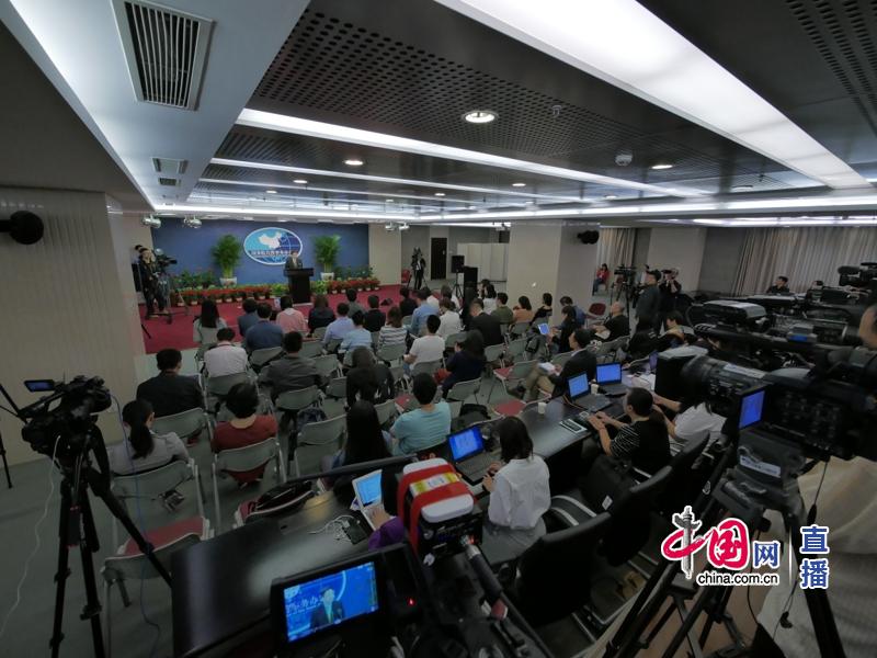 国台办新闻发言人马晓光主持发布会。中国网 高聪 摄