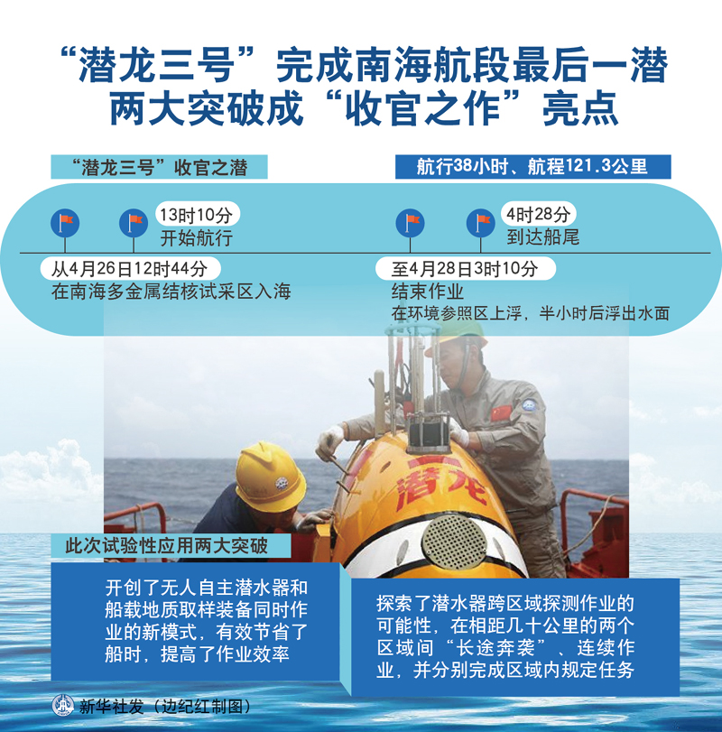 图表:“潜龙三号”完成南海航段最后一潜 两大突破成“收官之作”亮点