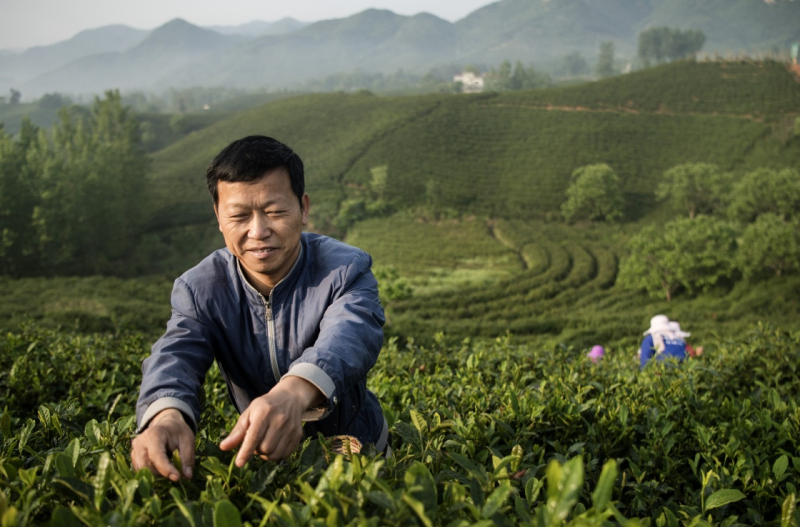 河南省信阳市浉河区浉河港镇南湾湖畔上游的文新茶叶生态观光园近年来采取“龙头企业+合作社+贫困户”模式,推动单一茶园向复合型立体茶园、生态茶园、有机茶园发展,先后建成“万亩生态有机茶园”“万亩标准化示范茶园”“万亩茶文化生态观光茶园”,形成集中成片的“信阳毛尖”名优茶生产基地,并通过茶旅游和乡村游开发实现三产融合,直接带动6500余农户2.3万多人在茶叶生产中受益,人均年增收达2050元,186户村民流转茶园收益达3600万元,让绿水青山变成了金山银山。