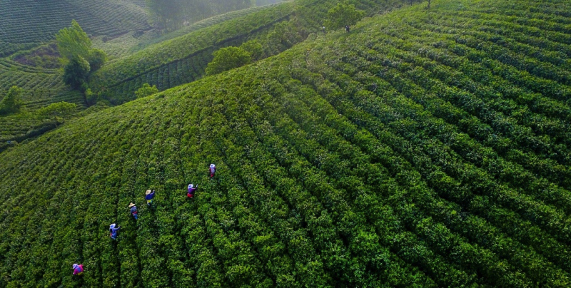 这是万亩连片的文新茶叶生态观光园(4月28日无人机航拍)。