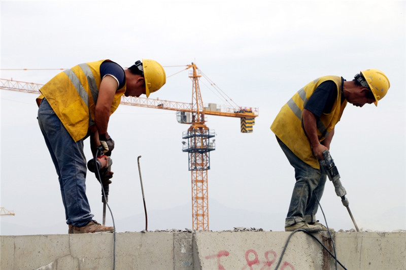 5月1日,中铁十九局职工在山东临沂平邑县鲁南高铁建设工地上作业。