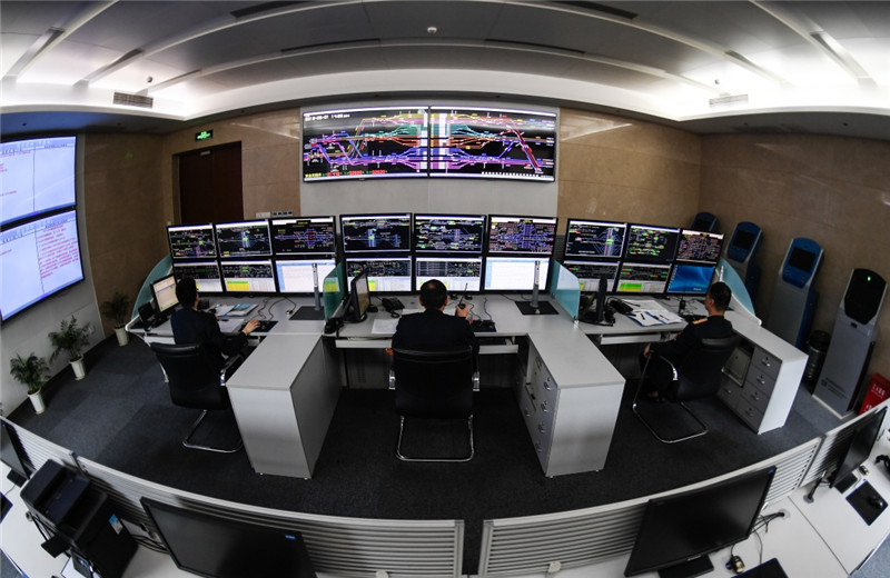5月1日,在高铁南京南站行车室,车站值班员在接发列车。